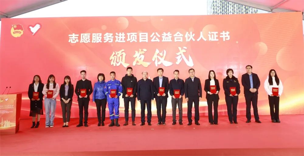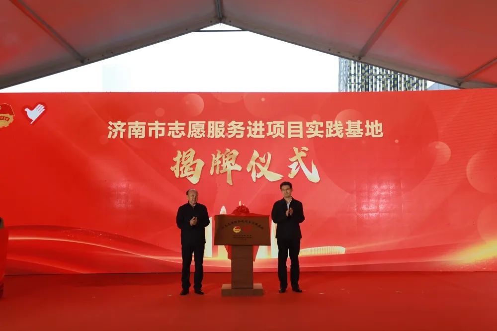 活動中,賈文、孫文國共同為濟(jì)南市志愿服務(wù)進(jìn)項(xiàng)目實(shí)踐基地揭牌;出席活動領(lǐng)導(dǎo)同志共同為工友代表發(fā)放慰問品與“小桔燈”愛心公益書籍,向參加活動志愿者組織代表頒發(fā)公益合伙人證書并向各青年志愿服務(wù)隊(duì)授旗。