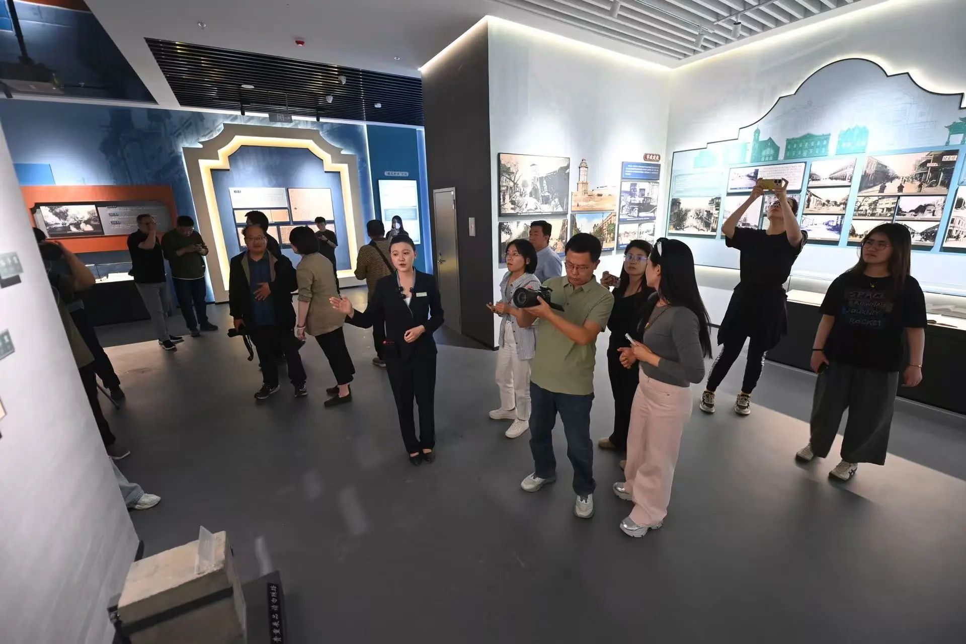 開埠博物館通過翔實的史料、圖片還原一段濟南近代史。在采風過程中,媒體記者一邊參觀一邊交流,詳細了解展品背后的歷史。在新城崛起展廳,一張《濟南商埠界線全圖》吸引記者們的注意,在了解到這是迄今發(fā)現(xiàn)的最早的濟南商埠藍圖后,紛紛圍上前拍攝,對布展的用心贊嘆不已。