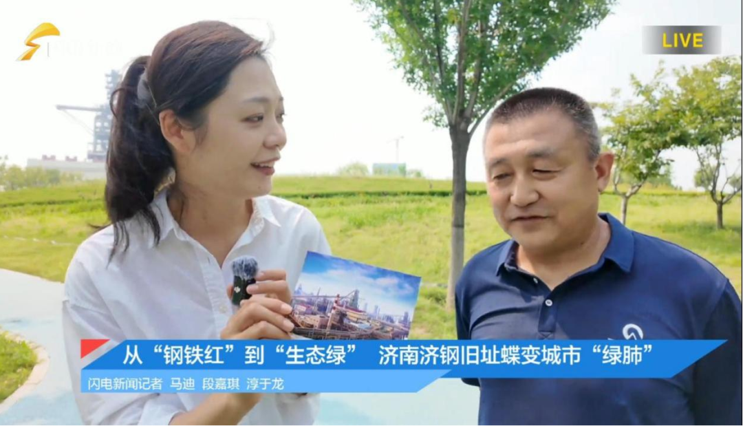 直播中,記者現(xiàn)場采訪了游園的周邊居民、濟鋼老職工以及跑團愛好者,直言中央森林公園已成為周邊廣大群眾休閑、露營、健身的好去處,切身感受到濟鋼舊址這片工業(yè)區(qū)翻天覆地的變化。